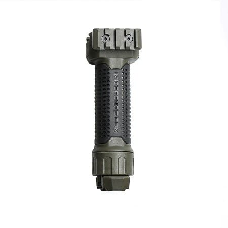 The IMI Defense EBF Polymer Enhanced Bipod Foregrip transforms fast from a vertical grip to a Bipod by the push of the thumb release button.