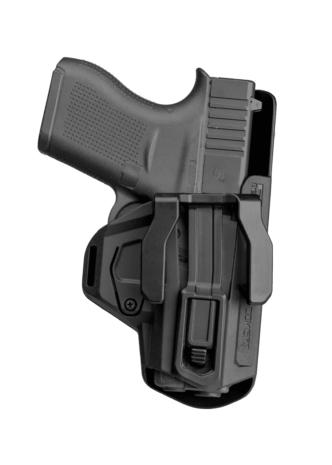 The Covert has a special slim design for the thinnest IWB holster possible, with a rounded back for comfortable carry and a thin profile made from advanced polymer materials that enable a thin, flexible yet durable holster with an average material thickness of 1.9 mm (0.07 inch).