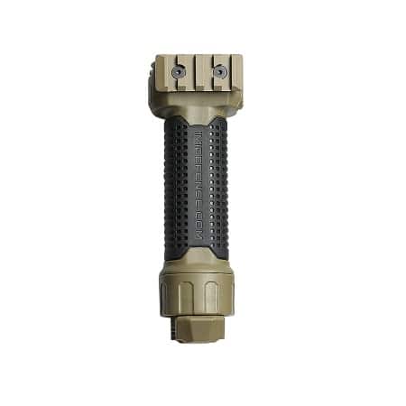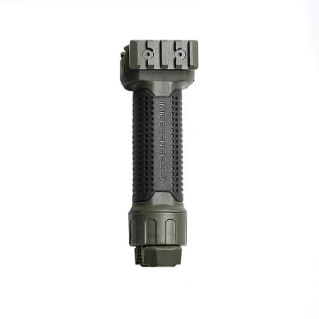 The IMI Defense EBF-2 Polymer Enhanced Bipod Foregrip with metal reinforced bipods transforms fast from a vertical grip to a Bipod by the push of the thumb release button.