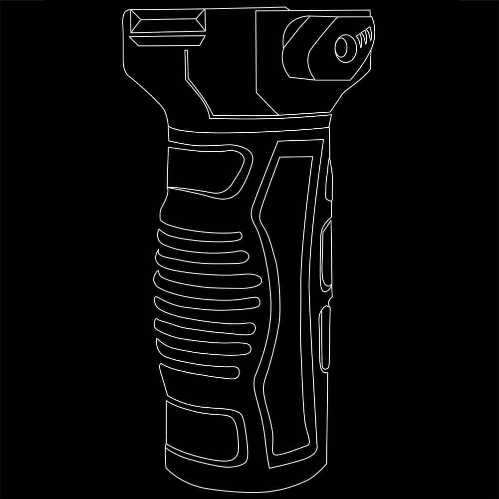 Light weight and inexpensive, it is designed for grasping by the frontal support hand, it is mounted on the fore-end of a long-barrel firearms.