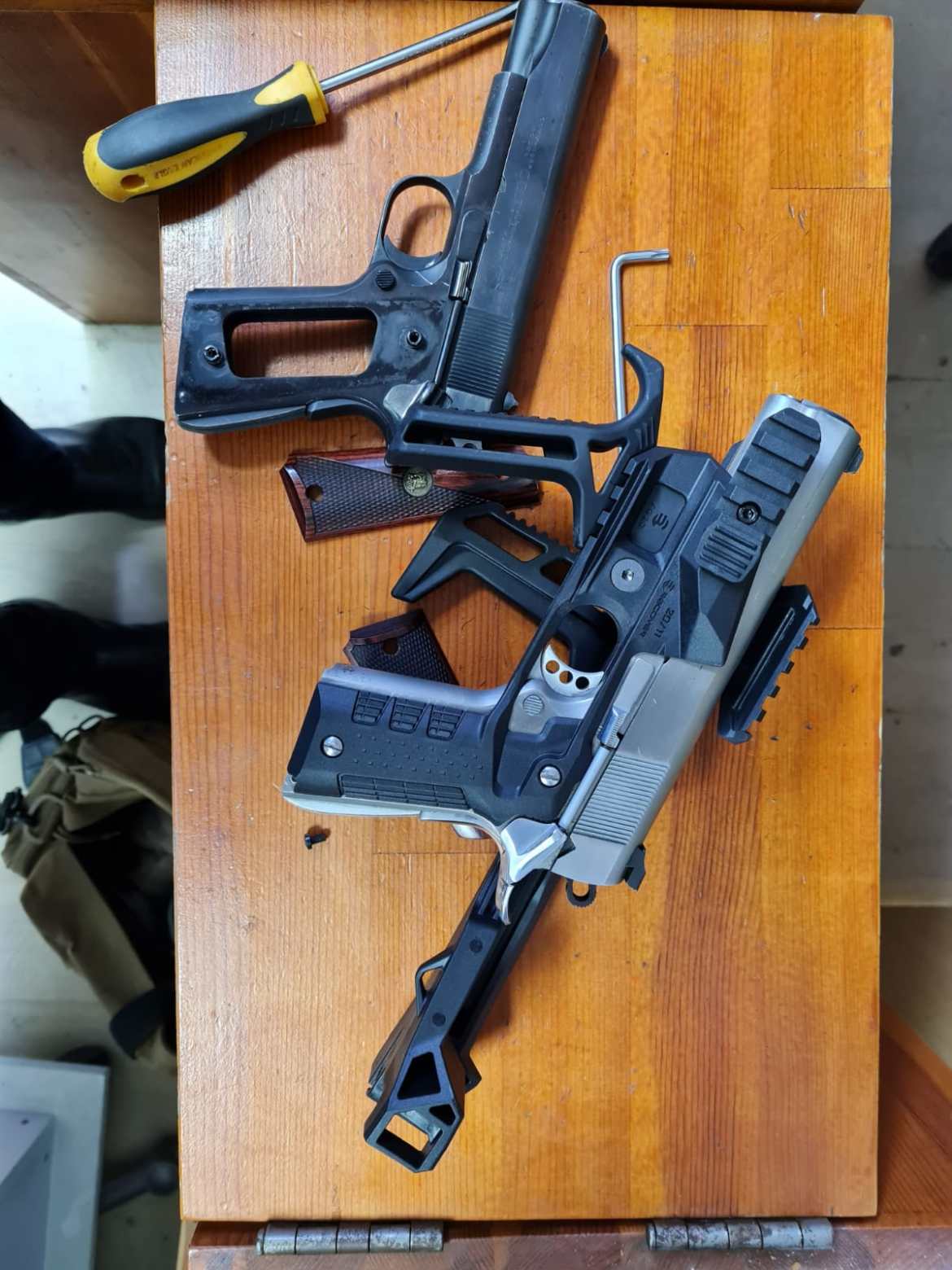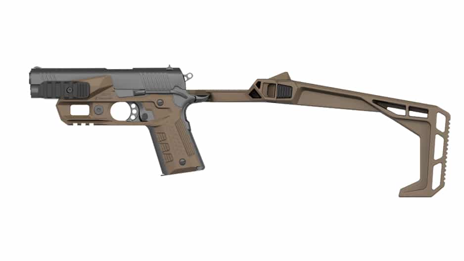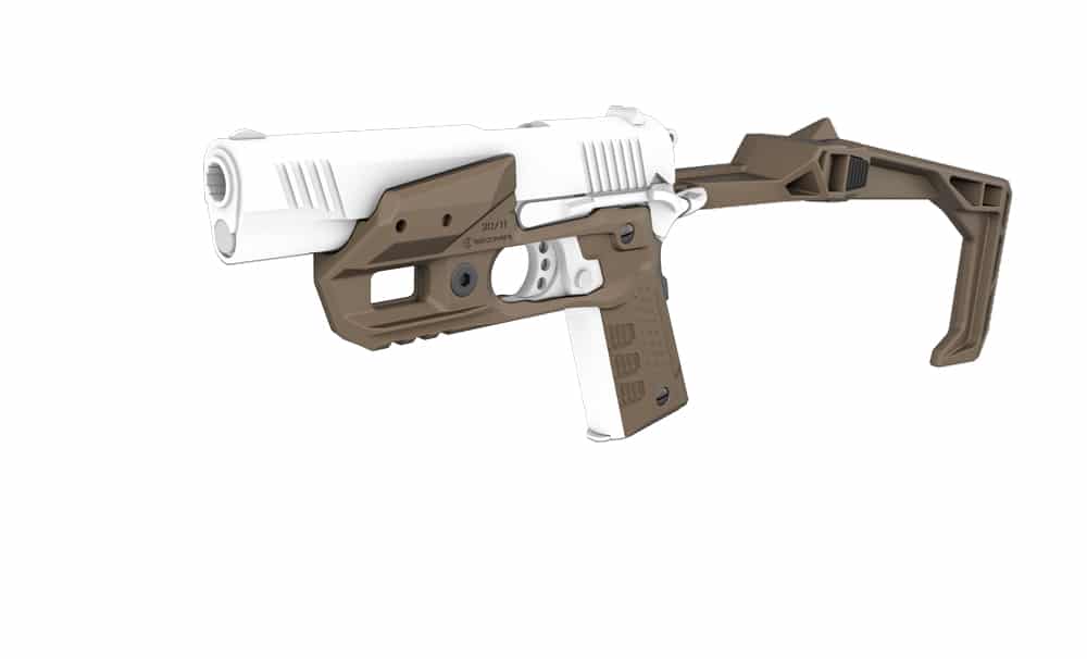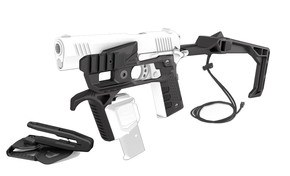 Fits all full size 1911’s across all generations. When selecting a bundle from the drop-down menu, the description and image will be updated to reflect what is included. (greyed out parts in the image are not included). See the fit chart below. All versions have a stock built-in (no brace version available)