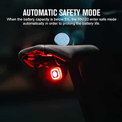 • 【High Performance】The bike rear light RN 120 has a maximum output of 120 lumens. 260-degree and 1500 meters max visibility makes the riding safer. IPX6 waterproof rate can resist water from any direction