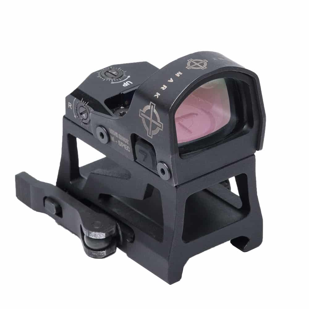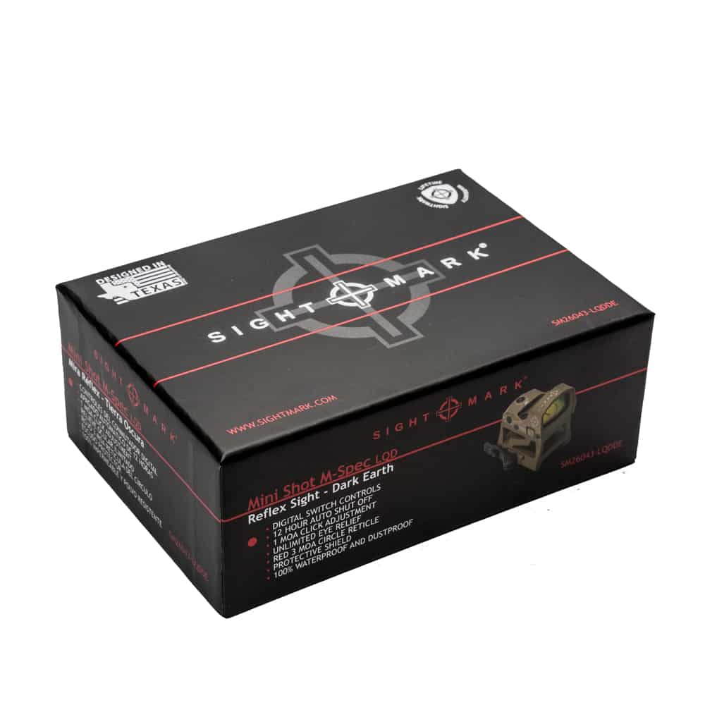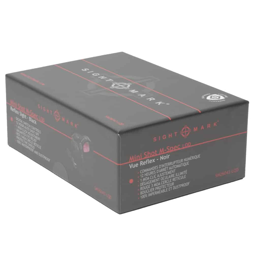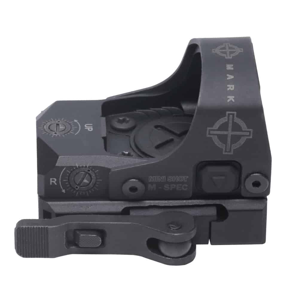 Designed to be used on shotguns, pistols and AR’s, the compact Mini Shot M-Spec LQD is a rugged reflex sight with a 3 MOA red dot reticle. The sight includes both a QD low profile mount and a QD riser mount.